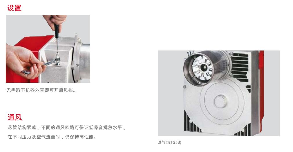 無(wu)需取下(xia)輕油(you)燃燒器機器外(wai)殼即可開啟風擋。盡管結(jie)構緊(jin)湊,不同的通(tong)風回(hui)路可保(bao)證低噪(zao)音排放水(shui)平, 在不同壓力及空氣流量時,仍保(bao)持高性能(neng)。